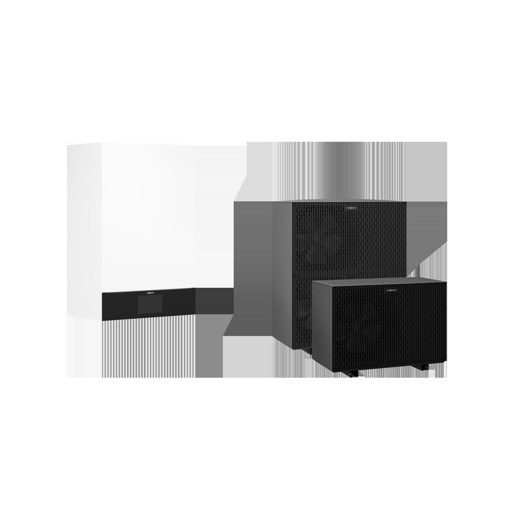 - Mit im Gerät integriertem Kommunikationsmodul. Fernbedienung und Monitoring des Geräts über Smartphone mit der ViCare App in Verbindung mit integrierter Internetschnittstelle und bauseitigem Internetzugang über WLAN oder LAN- (Zubehör) möglich